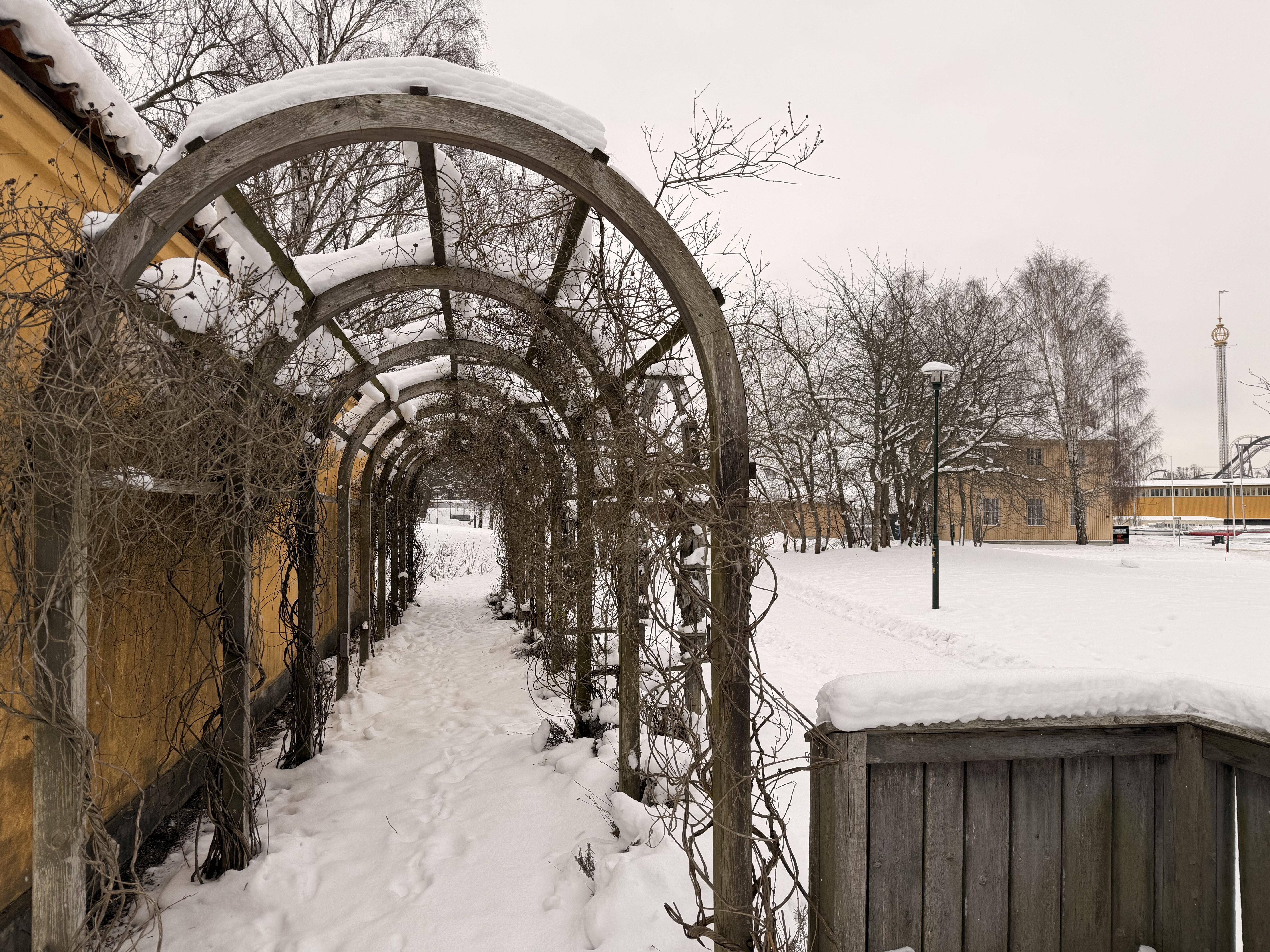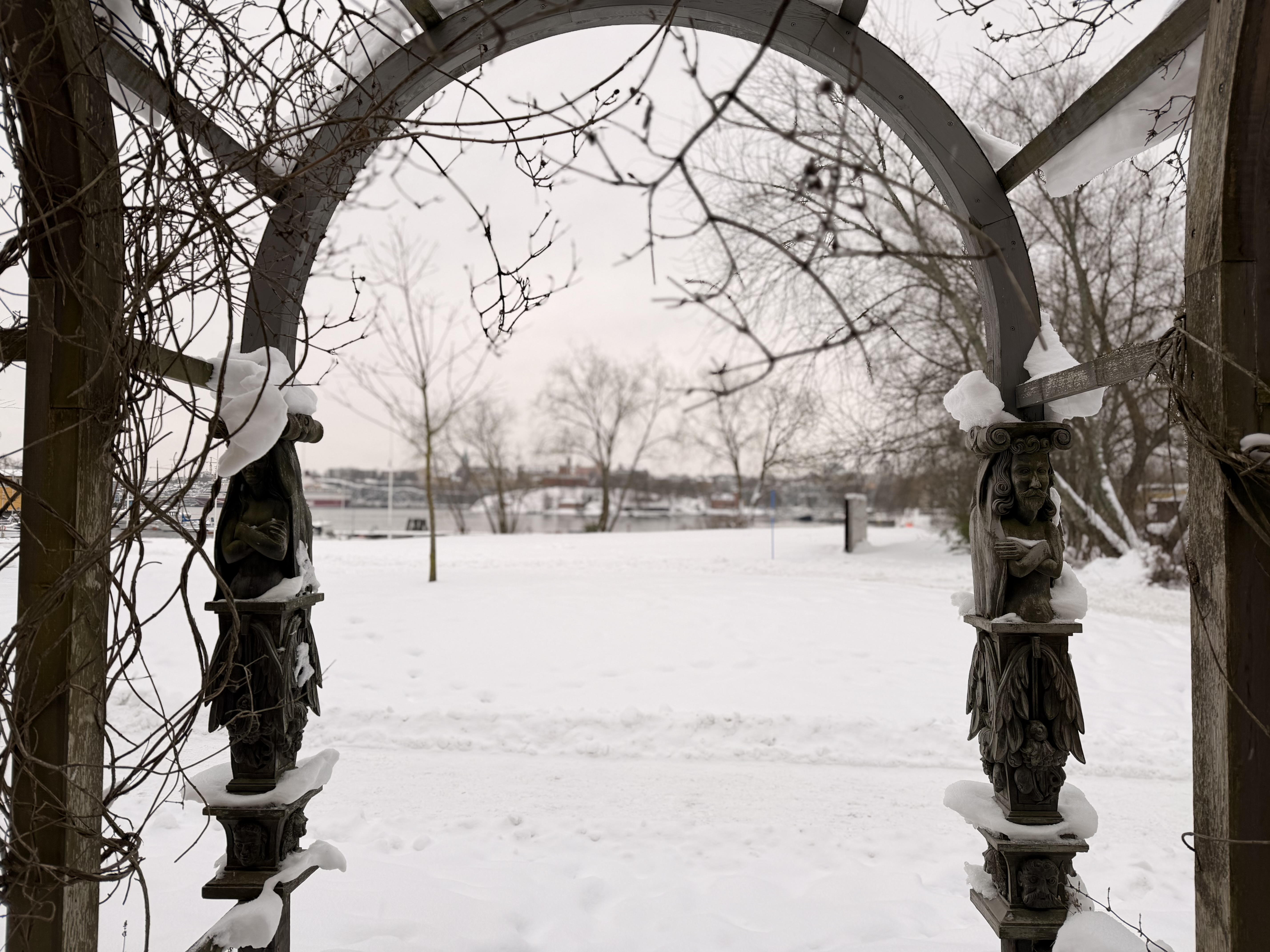 - Lövgången i trädgården påminner om den som Gustav II Adolf lät anlägga på Djurgården i början 1620-talet och knyter an till tidens trädgårdsmode. För att lyfta fram lövgångens anknytning till skeppet är långsidans ingångsbågar infällda skulpturkopior av balusterdockan på Vasa.